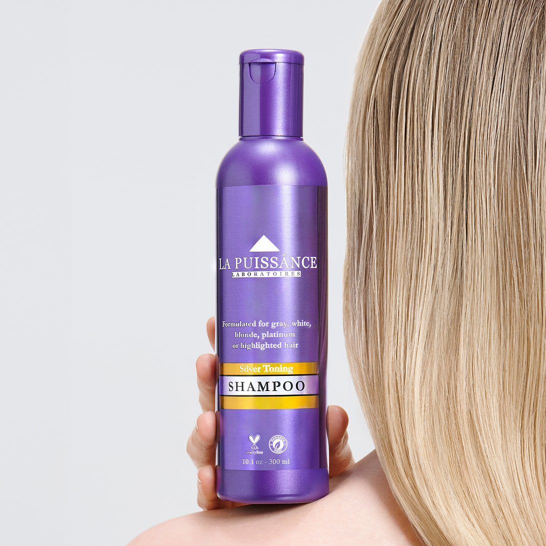 La Puissânce Silver Toning Shampoo features a gentle, paraben-free cleansing formula with purple-toned pigments that prevents oxidation of blonde dye, neutralizing unwanted yellow tones in gray, white or platinum blonde hair from roots to ends in a single use. It helps maintain the peak perfection of your blonde locks in between Salon visits.